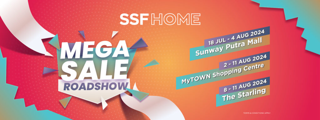 Get ready for an incredible shopping experience at the SSFHOME Mega Sale Roadshow! From 18 July to 4 August 2024, we’ll be at Sunway Putra Mall, followed by MyTOWN Shopping Centre from 2 to 11 August 2024, and The Starling Mall from 8 to 11 August 2024. This event is open to all, so gather