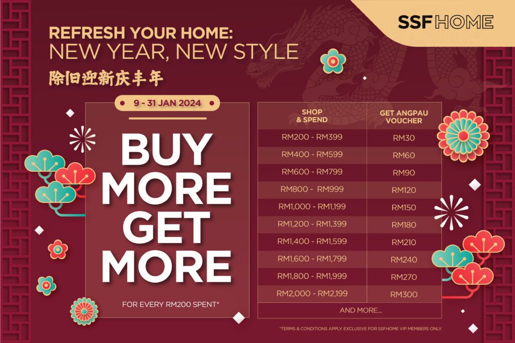 Shop at SSFHOME this New Year and redecorate your home in style with our “Buy More, Get More Ang Pau Voucher” promotion! 🧧 🎉🏡 For every RM200 you spend, you’ll receive an Ang Pau voucher, giving you even more savings as you shop. The more you buy, the more vouchers you’ll get! Don’t miss out