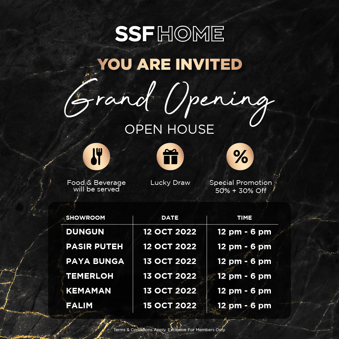 It is never too late to come by and celebrate our Grand Opening! Enjoy great savings with our 🎊𝑮𝒓𝒂𝒏𝒅 𝑶𝒑𝒆𝒏𝒊𝒏𝒈 𝑺𝒂𝒍𝒆🎊 at these selected showrooms only. Limited time offer, hurry up! Why search around when you can get everything from SSFHOME? From furniture to kitchenware, we have 13 departments for you to explore.