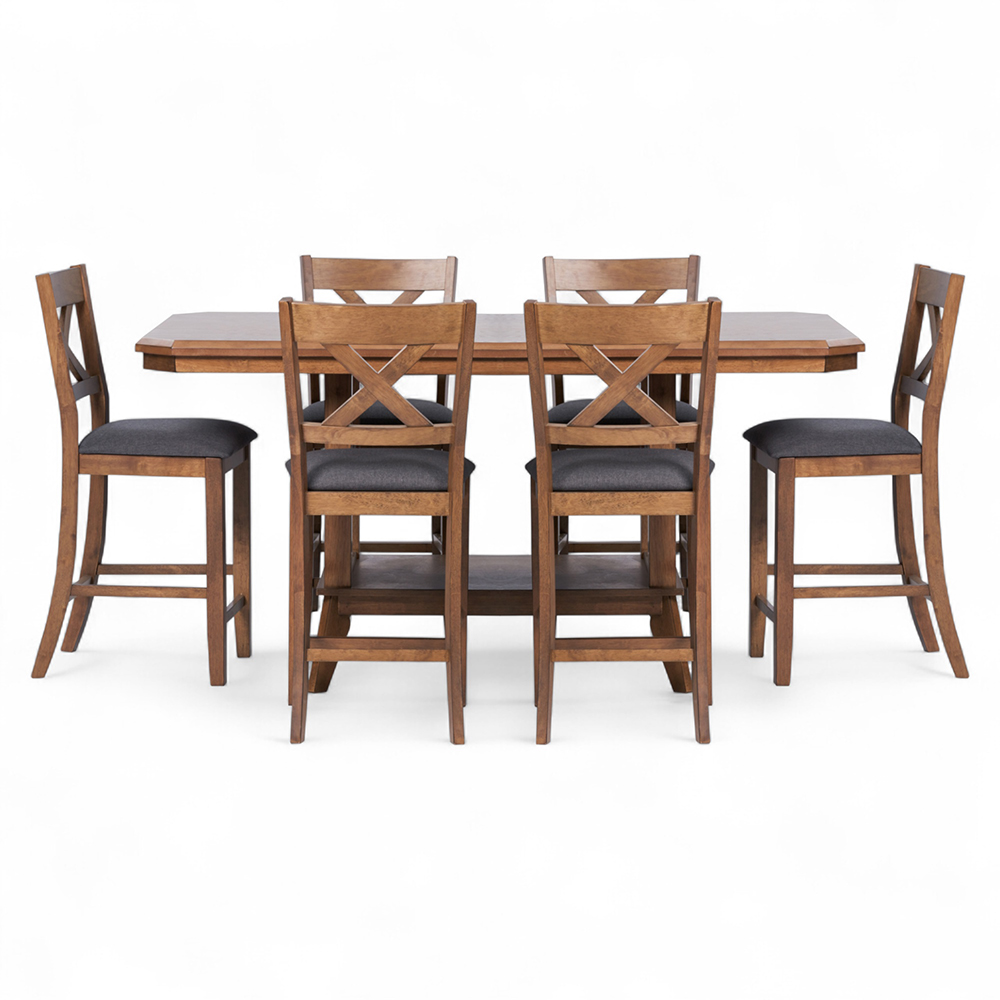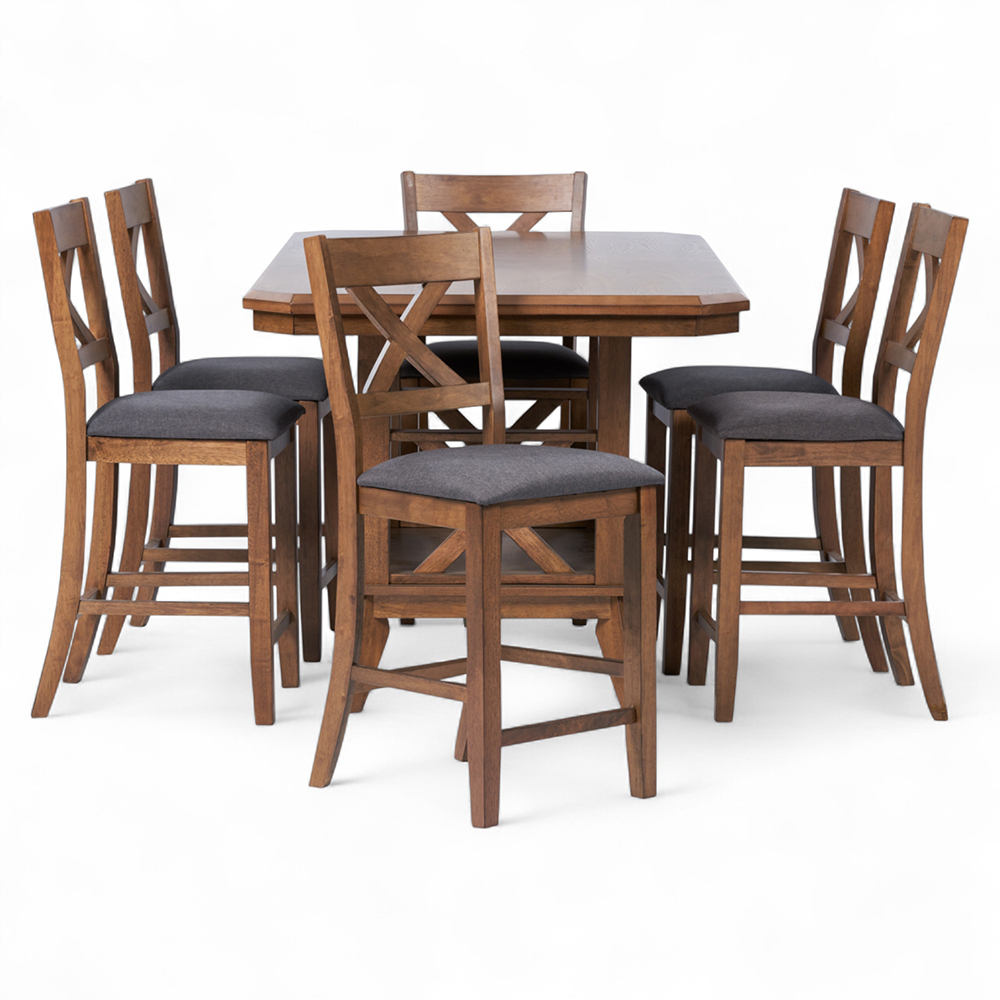 | Material: | Dining Table: Solid Rubberwood, MDF, Ash Veneer Chair: Solid Rubberwood, Foam, 100% Polyester |