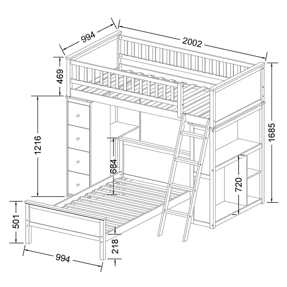 Carolee Single Bunk Bed with Storage Drawer