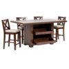 The counter-height dining table and chairs are built for modern urban living. Our Dinihari Collection designed with simple lines, blends a modern aesthetic with the rustic warmth of natural materials. Two drawers below the table add storage and make space for inspired displays.