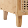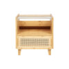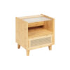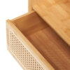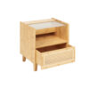 Airy and contemporary, this side table brings a natural element to your home. Its planked glass top serves as a stable home for your lamp, and its bamboo shelf offers an open design for any inspired decorations. Its drawer features rattan, providing extra, airy storage to keep your piece and parcel neat and organized.