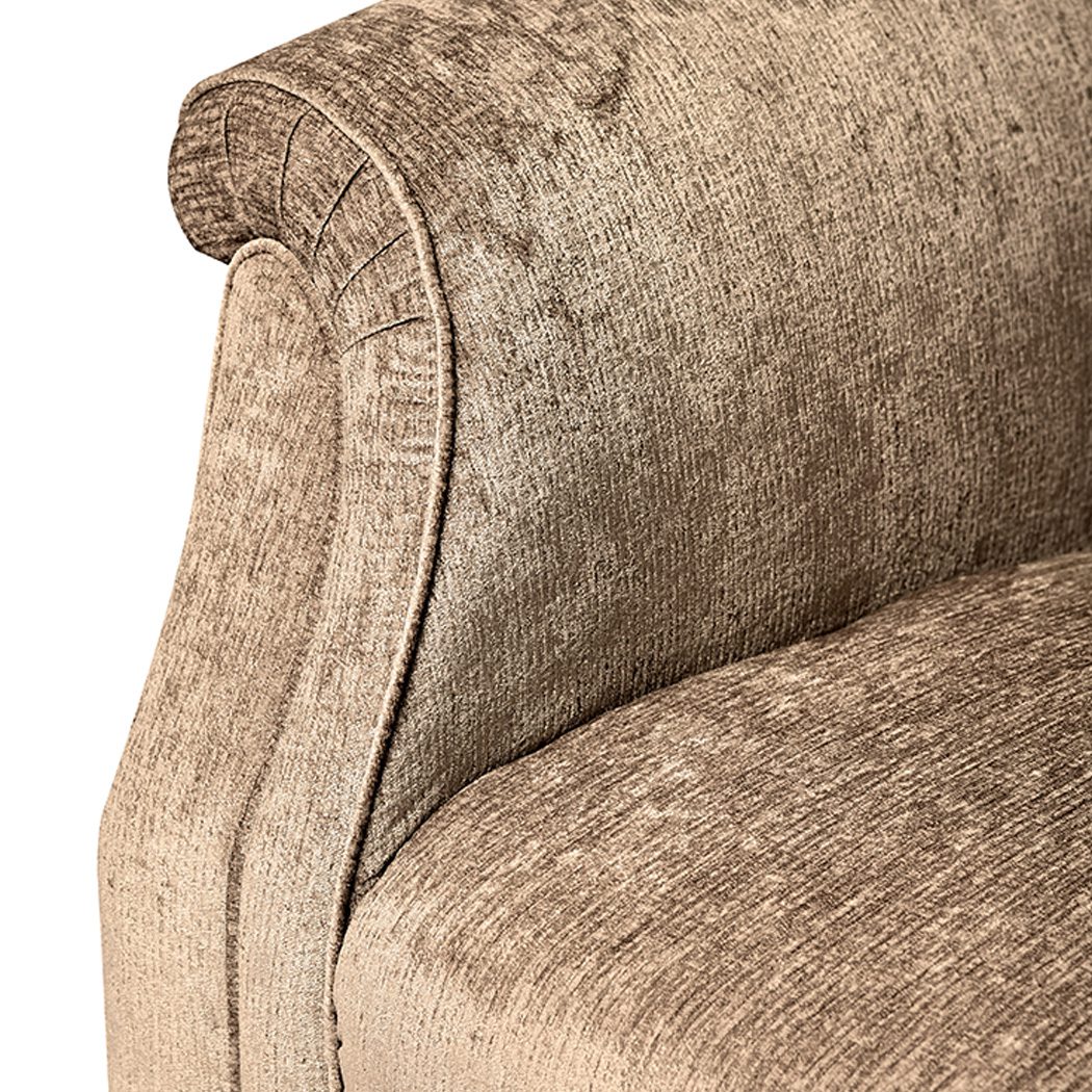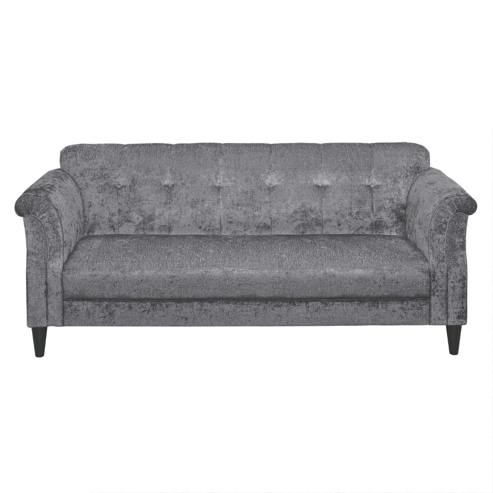 The tufted upholstered back gives a sophisticated profile. Pearly Collection features details like rolled-arms and cone-shaped legs that complement the graphic frame. This piece mixes well with other styles while adding a clean, updated look to a room.