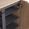 This shoe cabinet can store up to 12 pairs of footwear. Keep your daily footwear easily accessible in its open-front drawer. Welcome your visitors with lovely coziness by decorating its top with plants or improve your conveniences by keeping any necessities from keys to shoe care items.