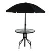 | Dimension: | Table: D80cm x H71cm Chair: W57cm x D64cm x H90cm Umbrella: D180cm x H180cm |