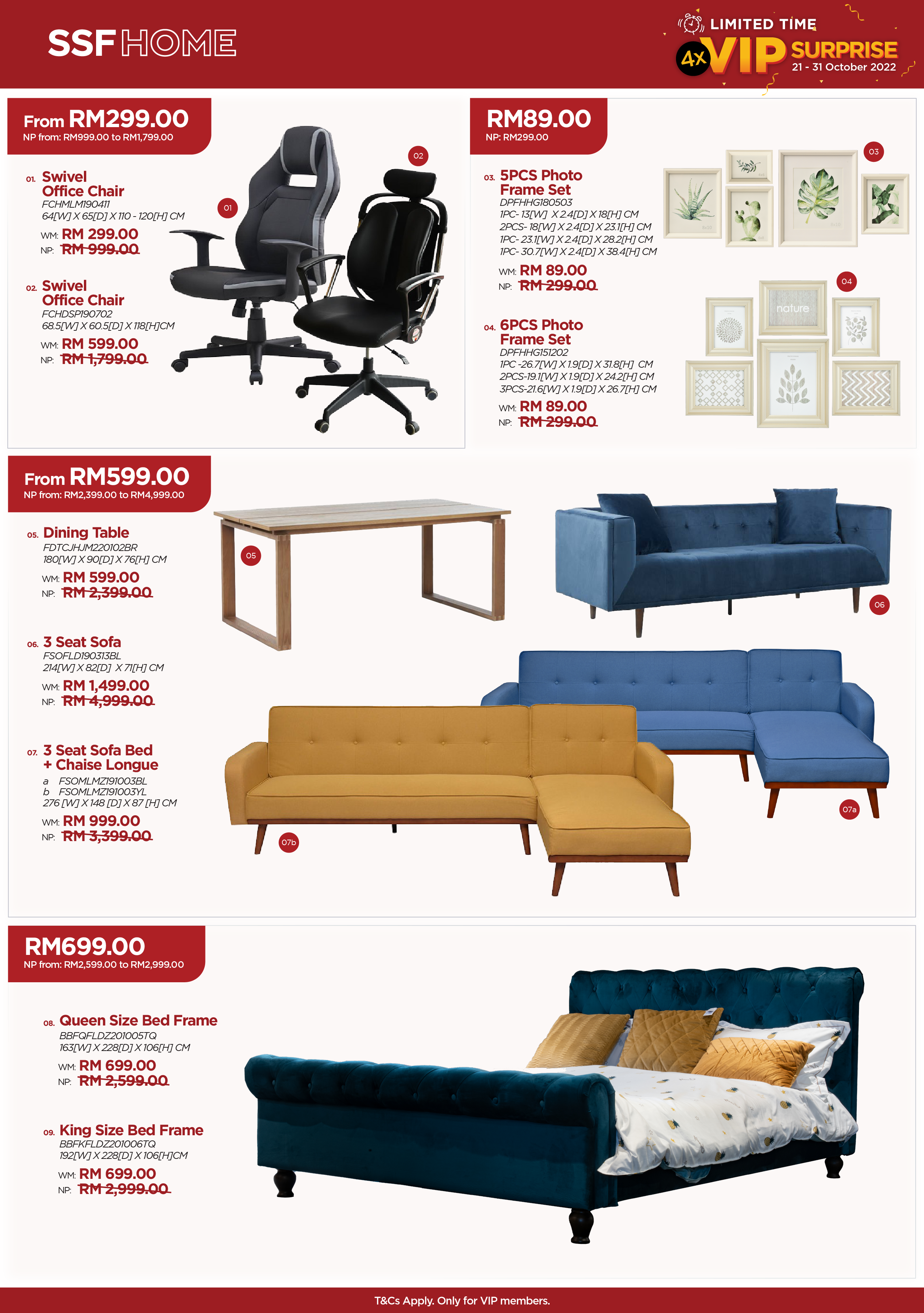 - Promotion is exclusive for SSFHOME VIP Members only and in-store & bazaar while stock last.